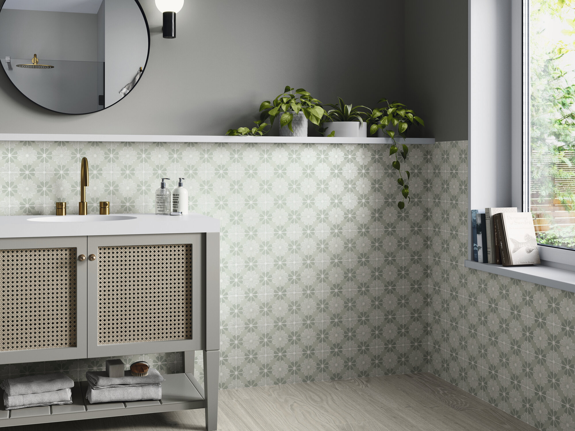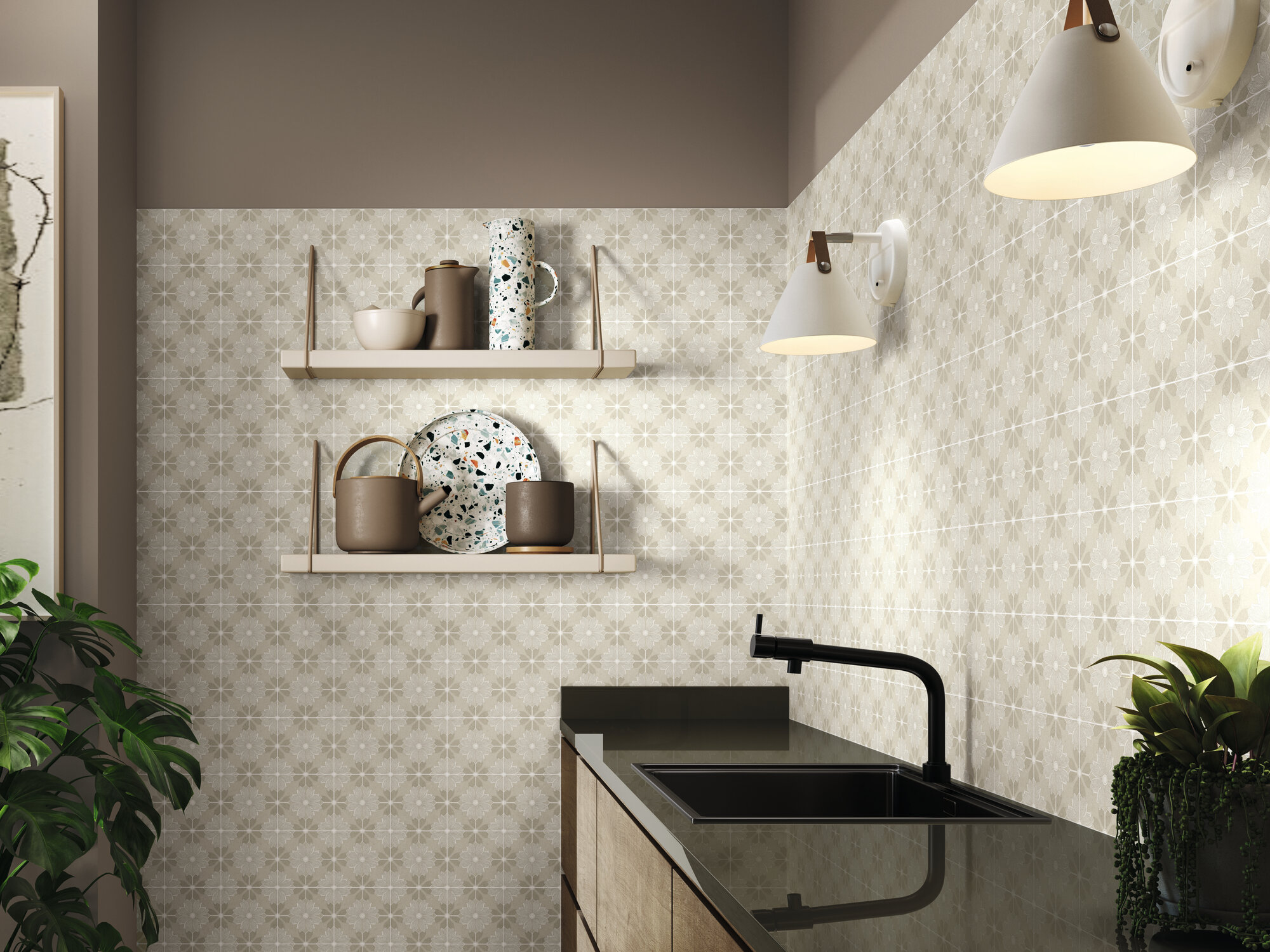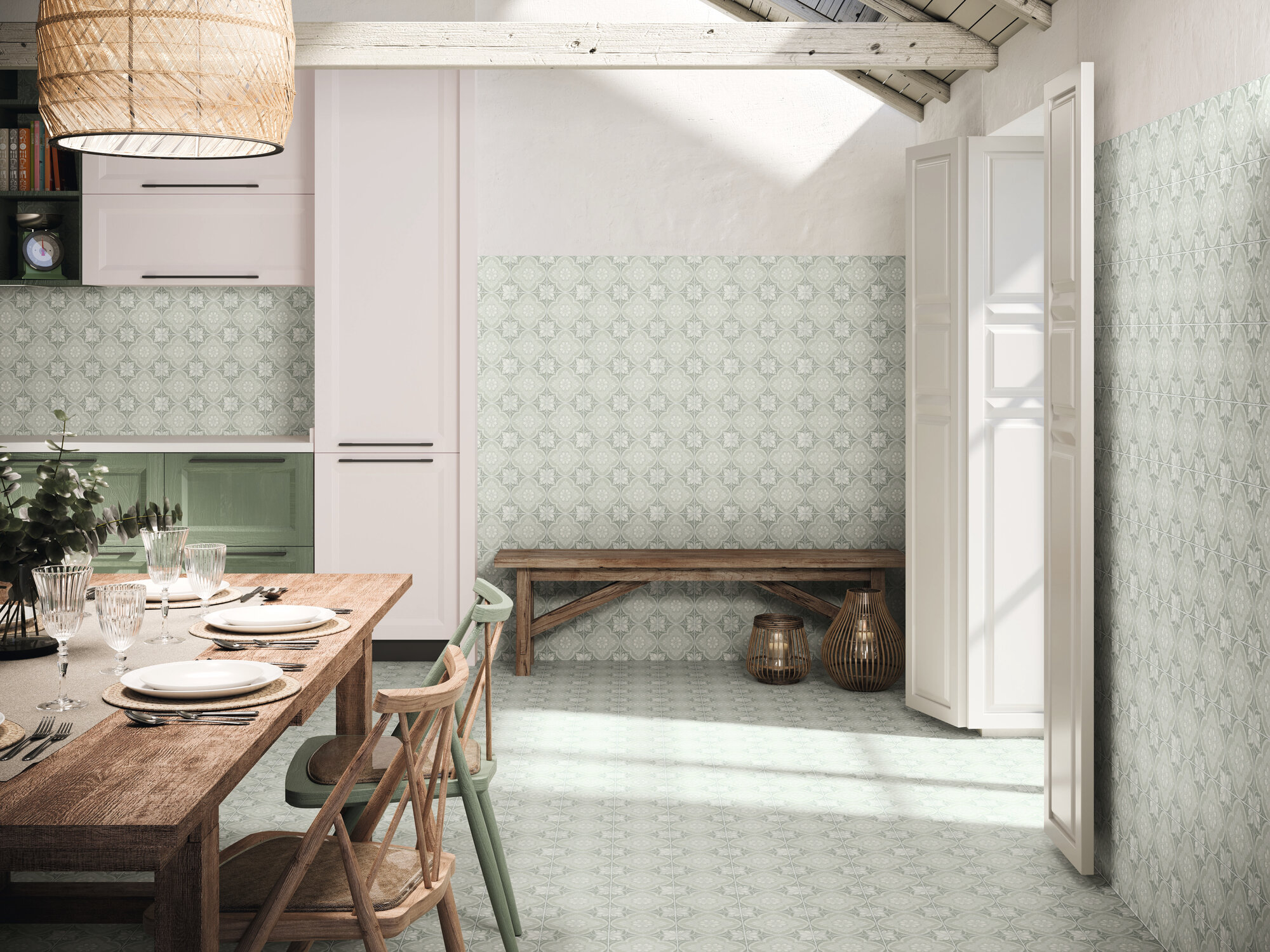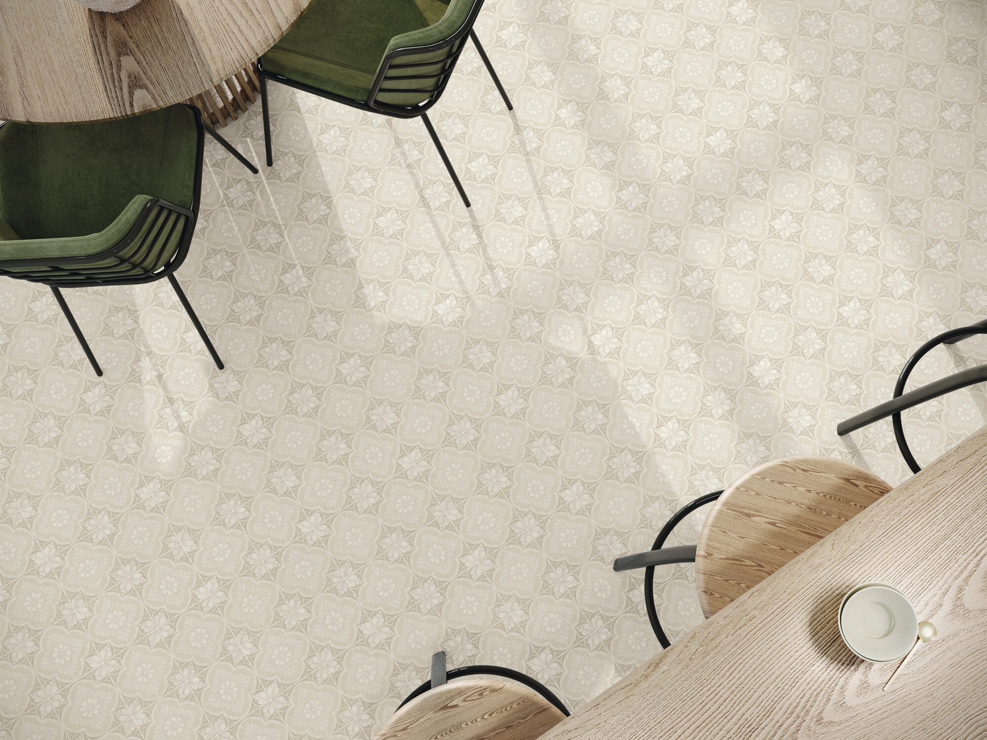 Siena ist eine Kollektion von Hydraulikfliesen, die eine Hommage an die Eleganz traditioneller handwerklicher Böden darstellt. Weit ab von neutralen und kalten Farben bringt ihr einzigartiges Muster einen Vintage-Touch, der den Raum mit Wärme und einer nostalgischen Atmosphäre erfüllt, die Erinnerungen an besondere Momente weckt.