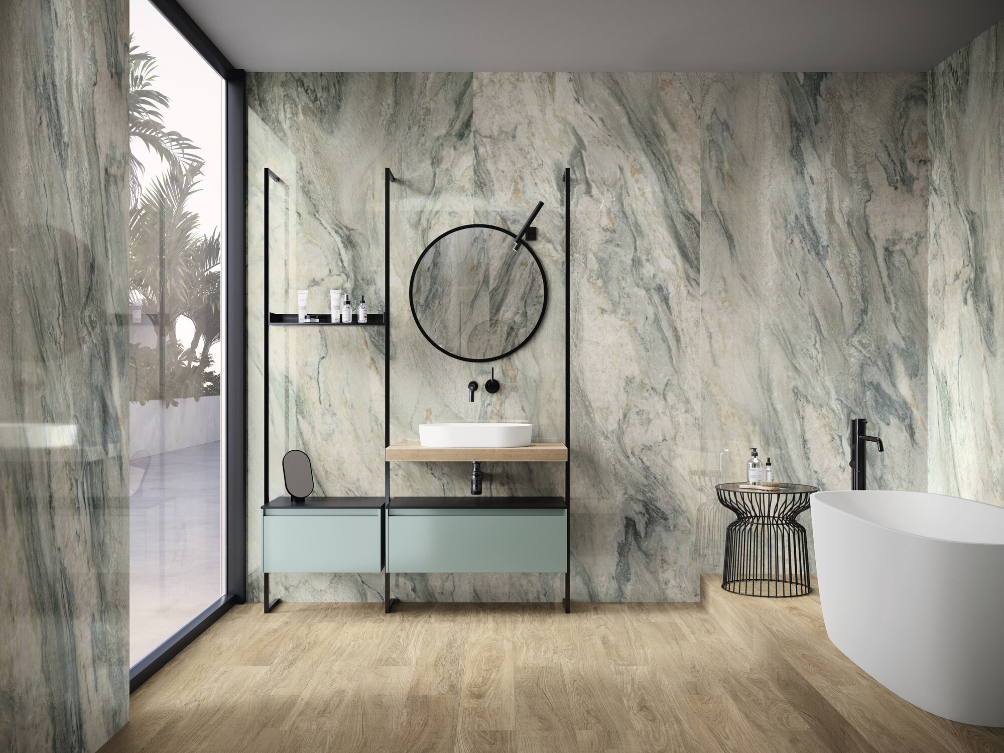 In Brazil, the country with the greatest biological diversity in the world, is Gaya Quartzite, a mineral with light and greenish tones. The tropical essence of its flora and fauna is reflected in the colors of this stone, which presents a unique range of tones that is difficult to replicate. Our Gaya Quartzite collection is a way of bringing nature into the home through timeless and beautiful porcelain marble. The colors and qualities of the original mineral are reflected through a very careful graphic, making it an ideal collection for interior decoration.