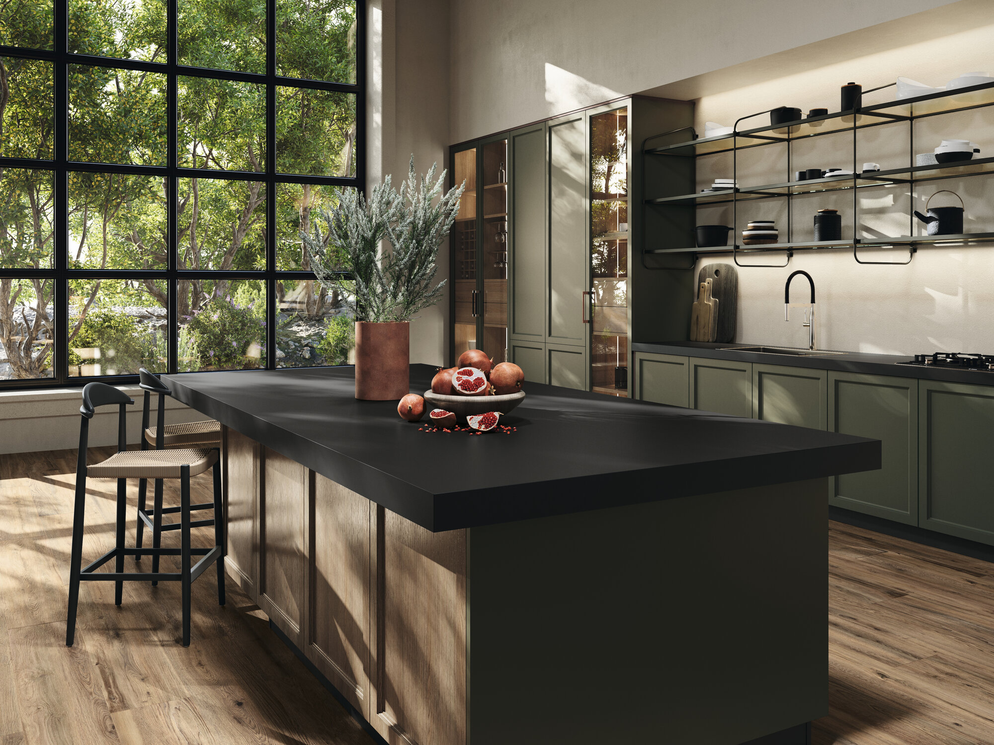 The Nero collection offers a large format and thick porcelain, capturing the depth and nuances of pure black. Ideal for surfaces and flooring. This piece combines resistance with timeless elegance, inherent to the intensity that emanates from its black color, transforming any space into an environment of sophistication and modernity, providing durability and a beauty that defies the passage of time.