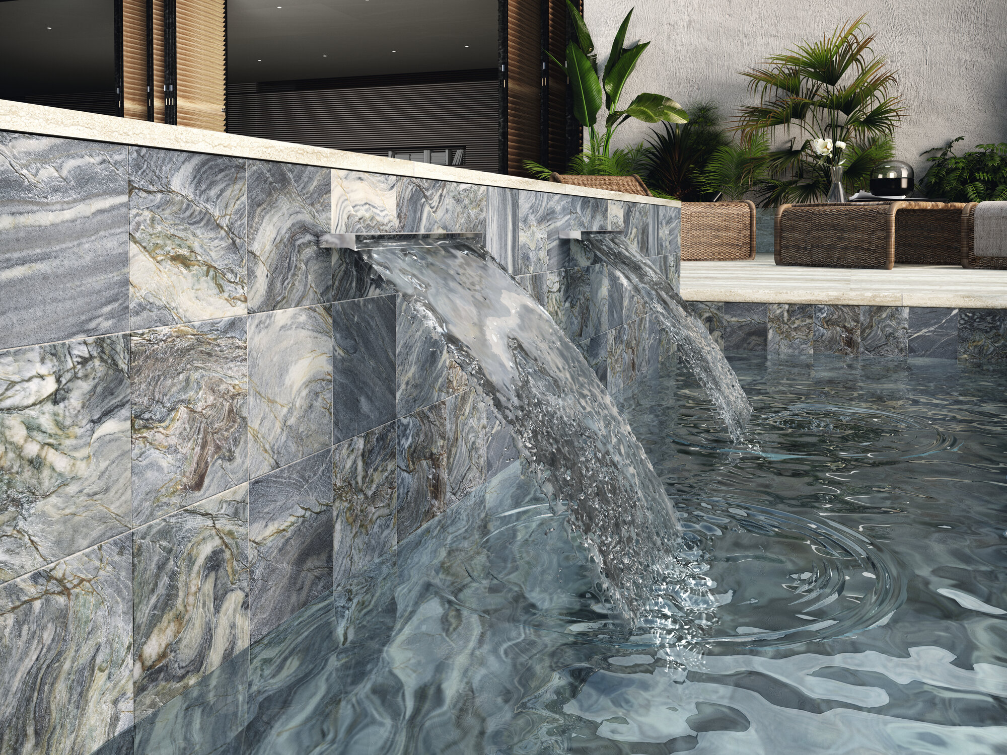 The sea water unfolds before our eyes an extraordinary variety of blues, ranging from the navy blue to the turquoise of the paradisiacal white sand beaches. The iconic images of the depths of the sea, coral reefs and posidonia meadows have inspired Ocean Blue, a collection by APE Grupo designed for outdoor use and swimming pools. This collection is created for the most daring architectures, capable of creating sophisticated atmospheres. It is, in short, a superb material capable of enhancing the beauty of any outdoor space.
