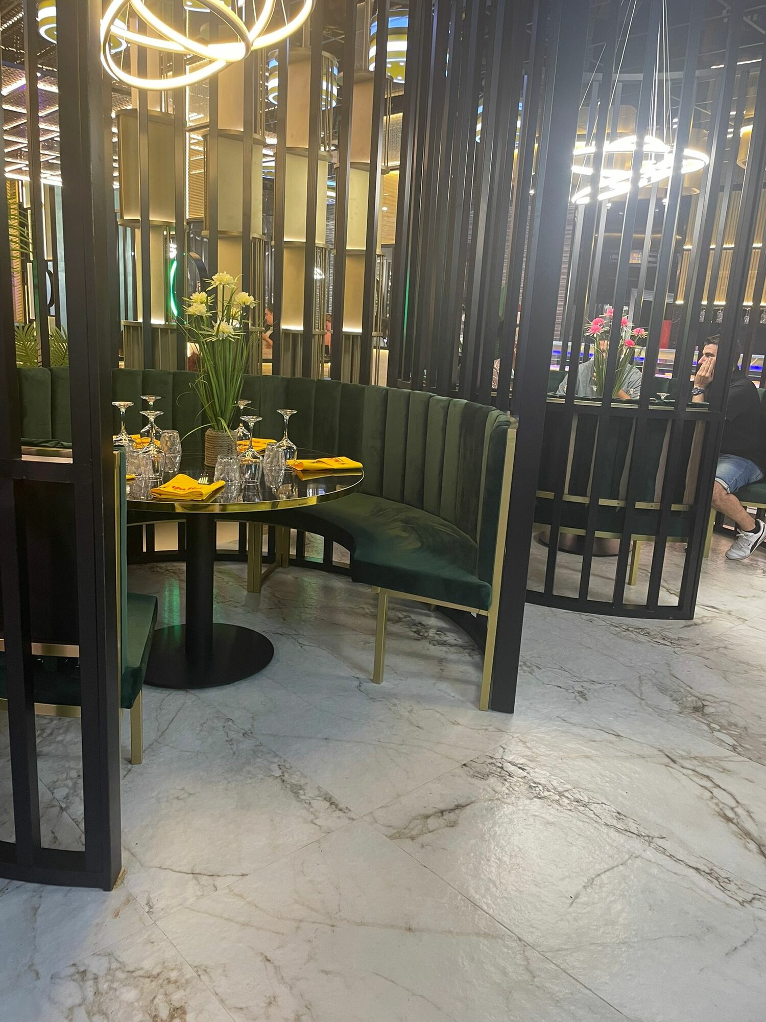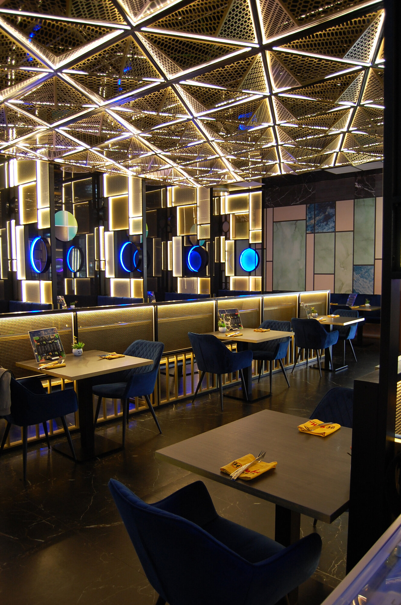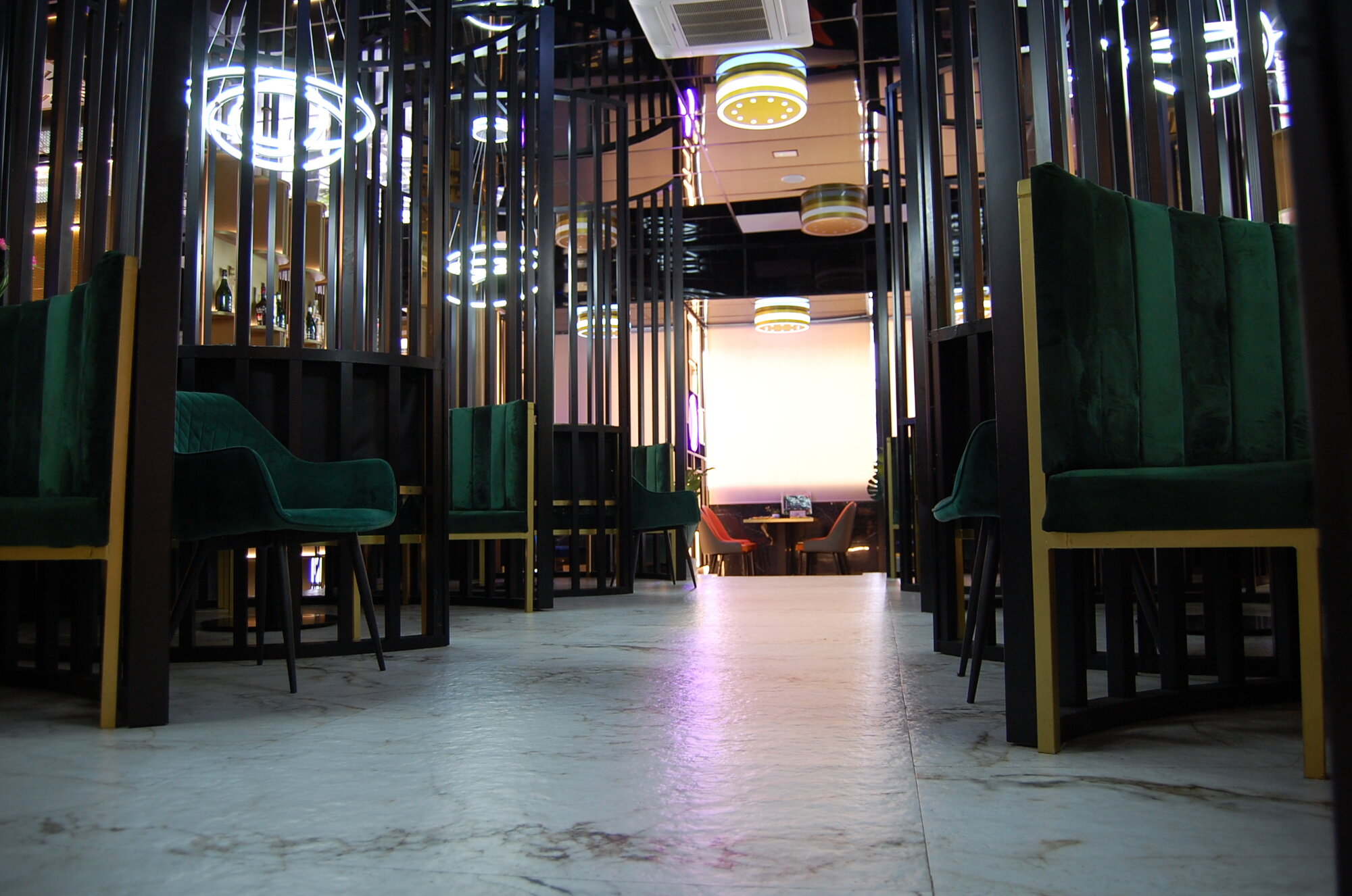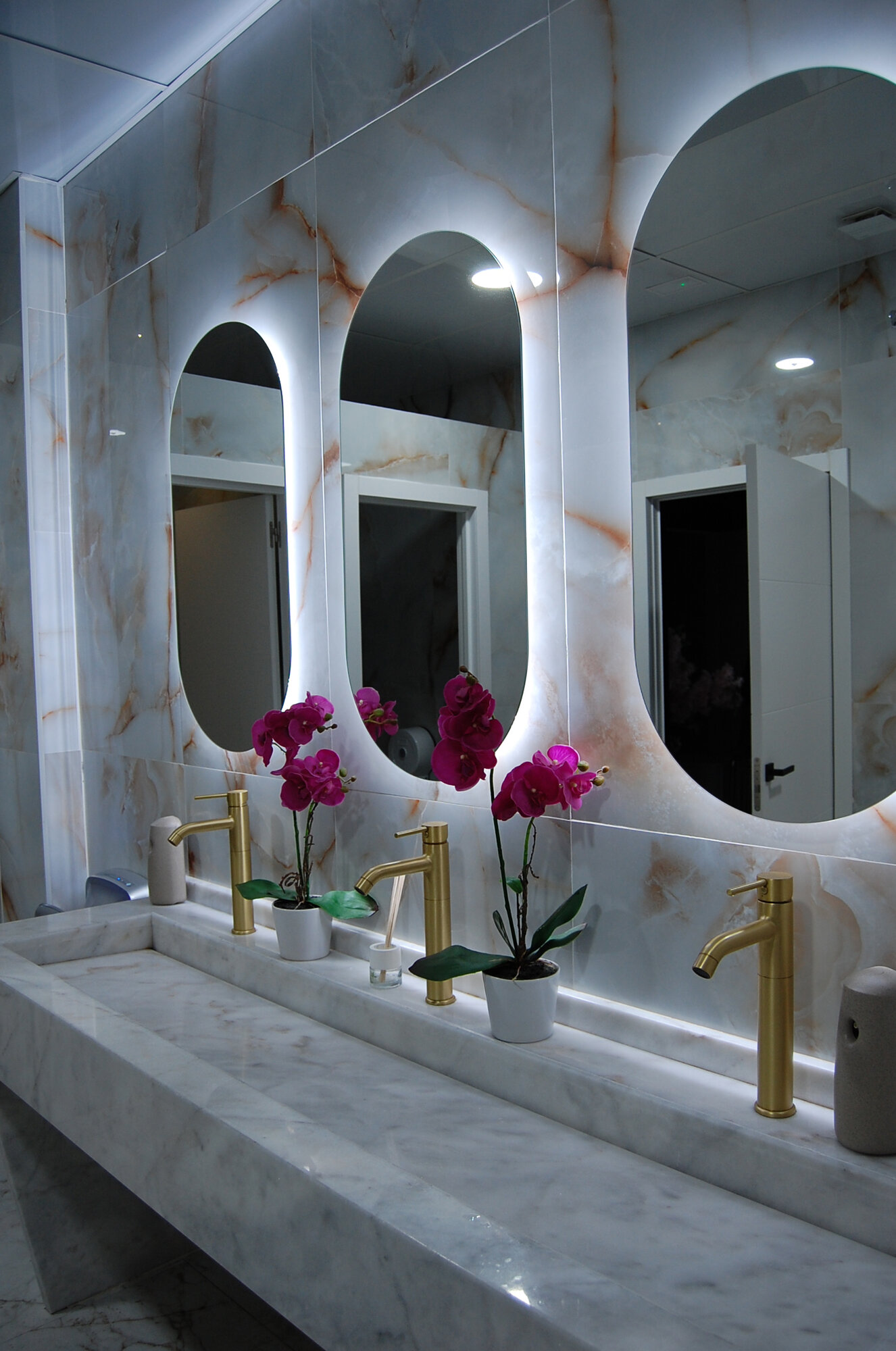 Malgré la grande taille de l’établissement, chaque zone de ce restaurant situé à Alicante (Espagne) est unique et spéciale et offrent une intimité et une expérience complète aux clients. C’est dans cette optique que le sol Night Lux Matt a été intégré pour habiller la majeure partie de l’espace de son noir mat qui souligne la couleur du mobilier et l’éclairage. Les reflets du Night Lux Pol apportent une touche de luxe aux espaces de travail et aux couloirs. Au centre de l’espace, une plateforme avec revêtement de sol Natural Jewell Matt offre plus d’intimité et de contraste, et offre une passerelle esthétique pour relier les salles de bains, qui combinent les modèles Onice Nácar poli au mur et Natural Jewell mat au sol pour créer une sensation de luxe. La rénovation mélange l’actuel avec l’élégance vintage des années 50 d’Hollywood, offrant une expérience sensorielle unique.