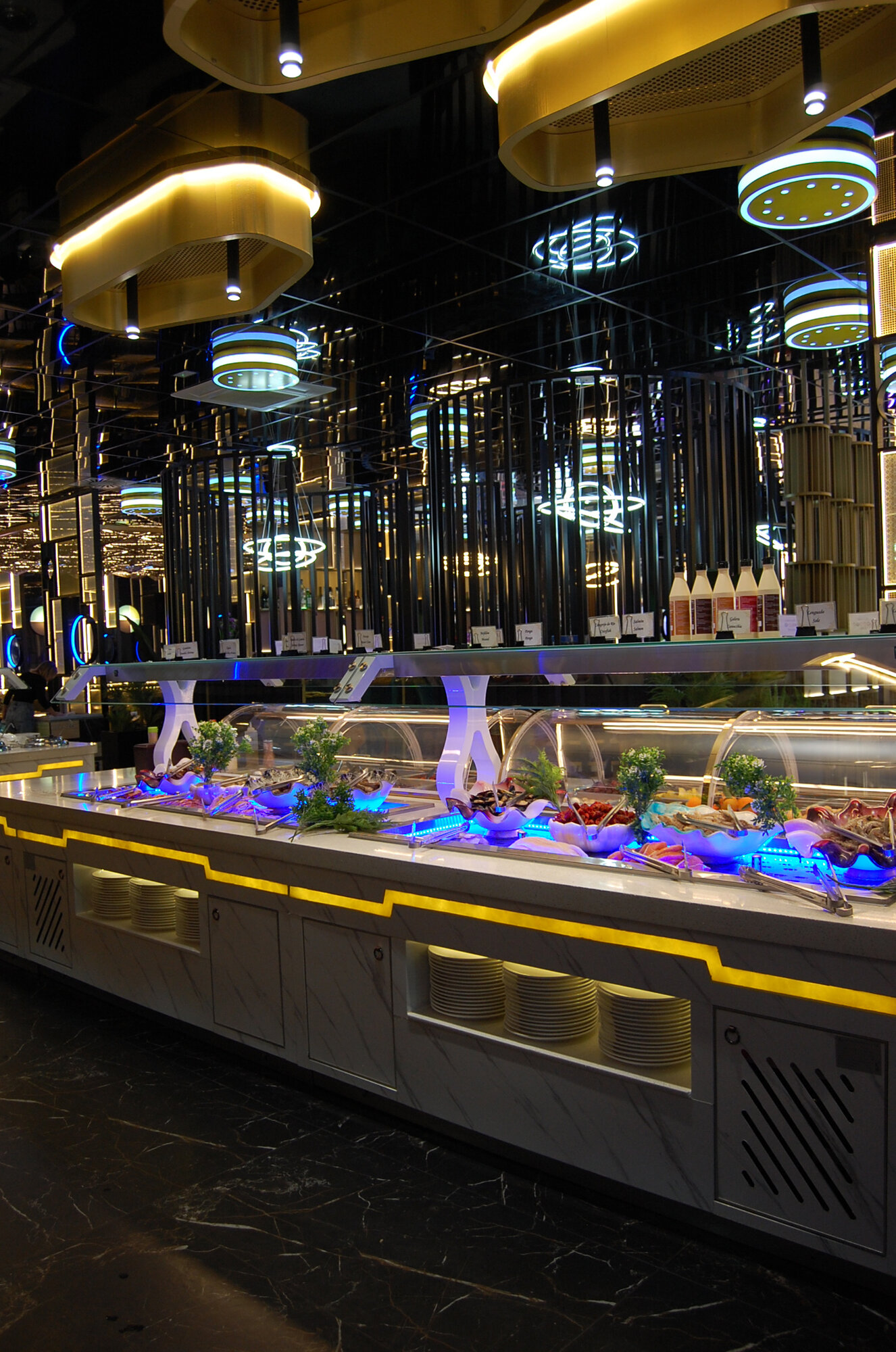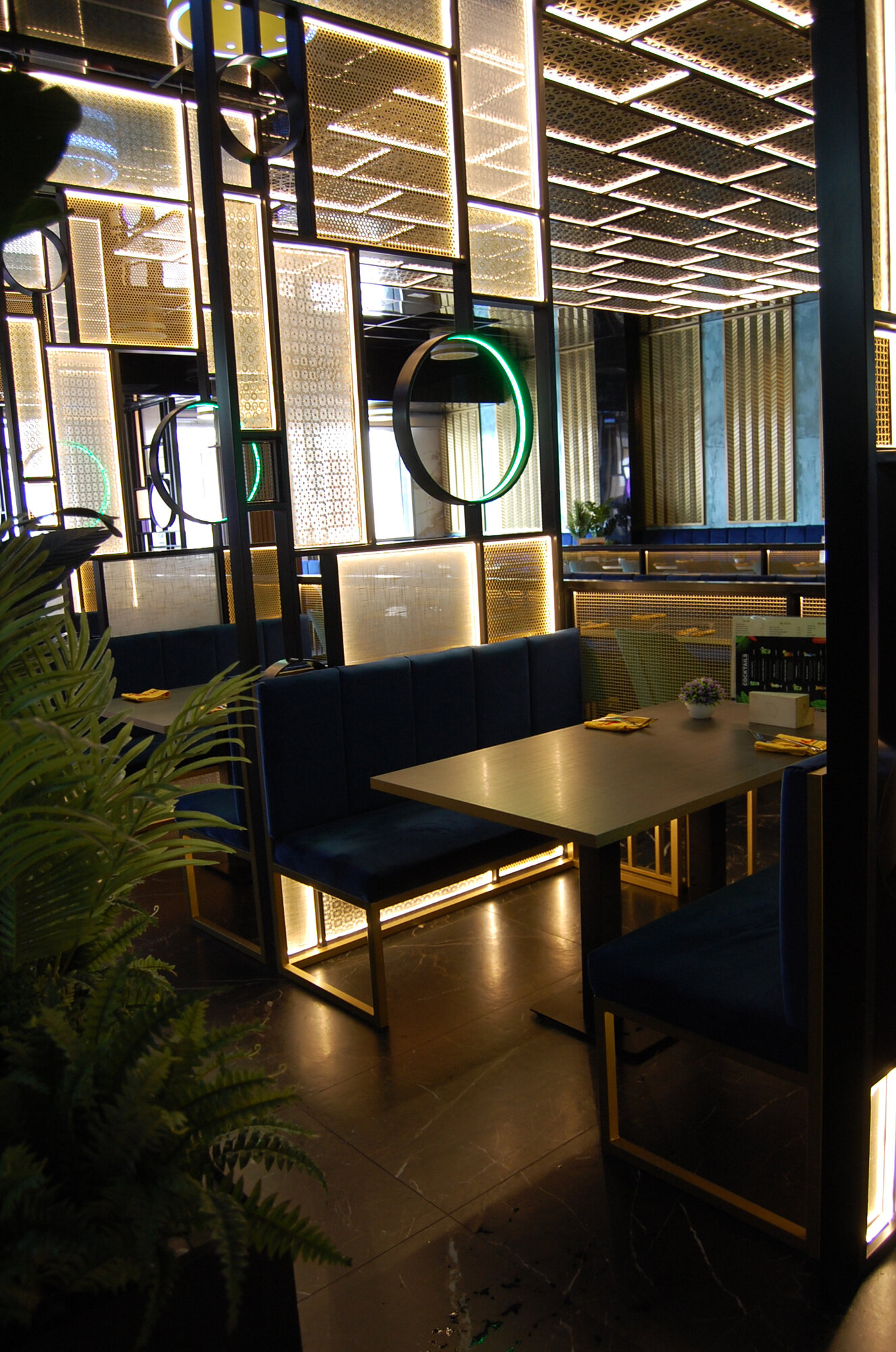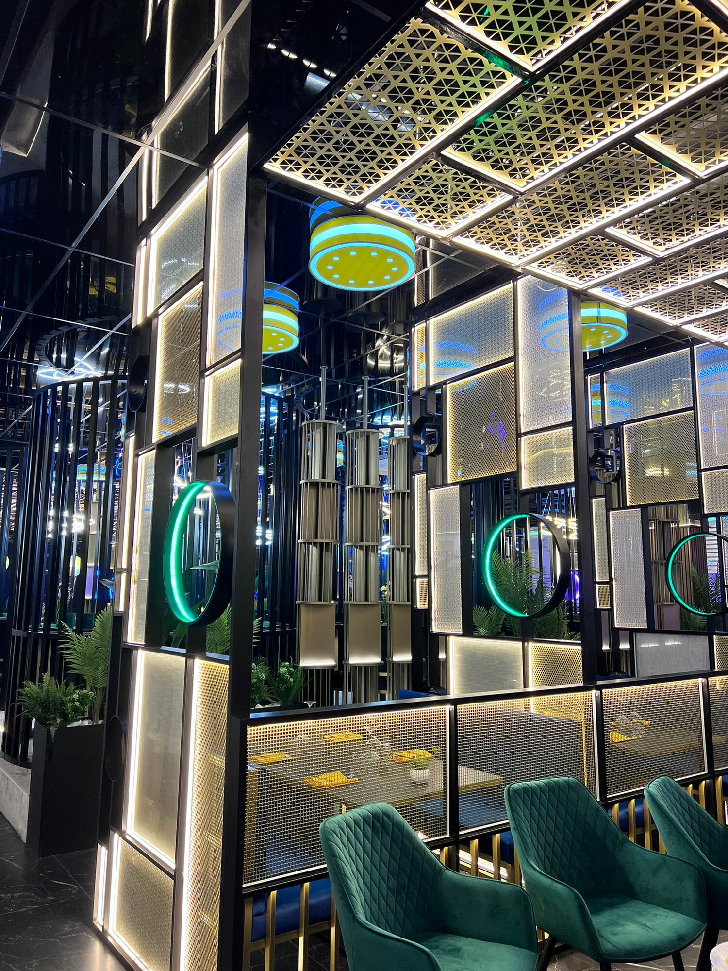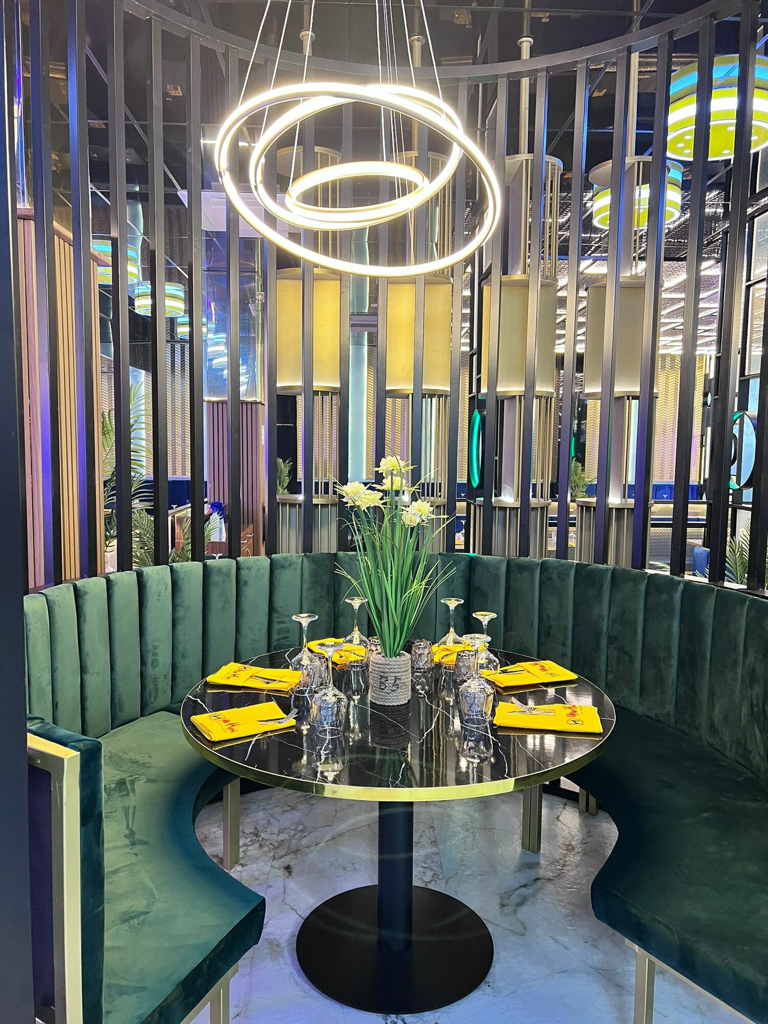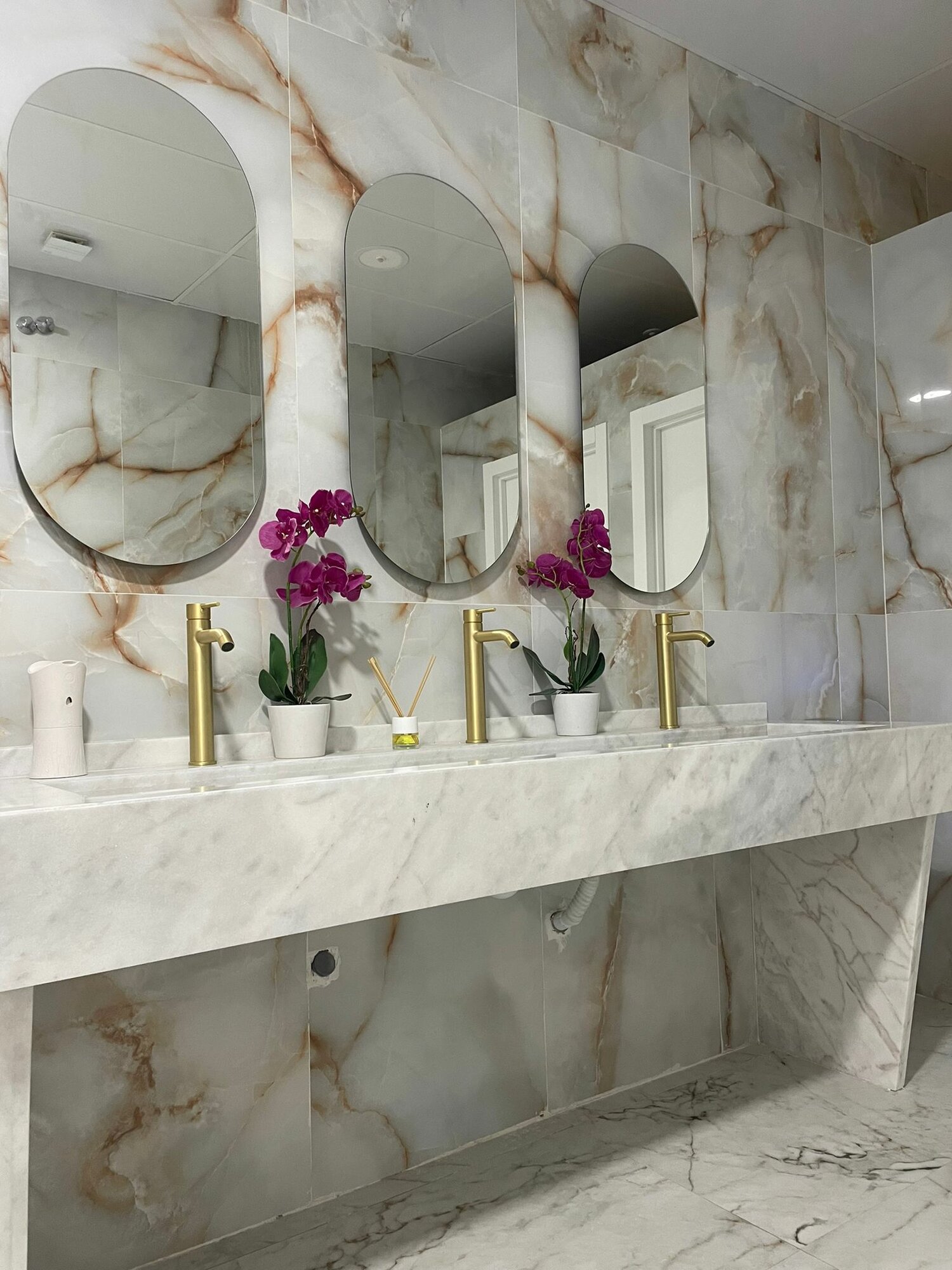 Malgré la grande taille de l’établissement, chaque zone de ce restaurant situé à Alicante (Espagne) est unique et spéciale et offrent une intimité et une expérience complète aux clients. C’est dans cette optique que le sol Night Lux Matt a été intégré pour habiller la majeure partie de l’espace de son noir mat qui souligne la couleur du mobilier et l’éclairage. Les reflets du Night Lux Pol apportent une touche de luxe aux espaces de travail et aux couloirs. Au centre de l’espace, une plateforme avec revêtement de sol Natural Jewell Matt offre plus d’intimité et de contraste, et offre une passerelle esthétique pour relier les salles de bains, qui combinent les modèles Onice Nácar poli au mur et Natural Jewell mat au sol pour créer une sensation de luxe. La rénovation mélange l’actuel avec l’élégance vintage des années 50 d’Hollywood, offrant une expérience sensorielle unique.