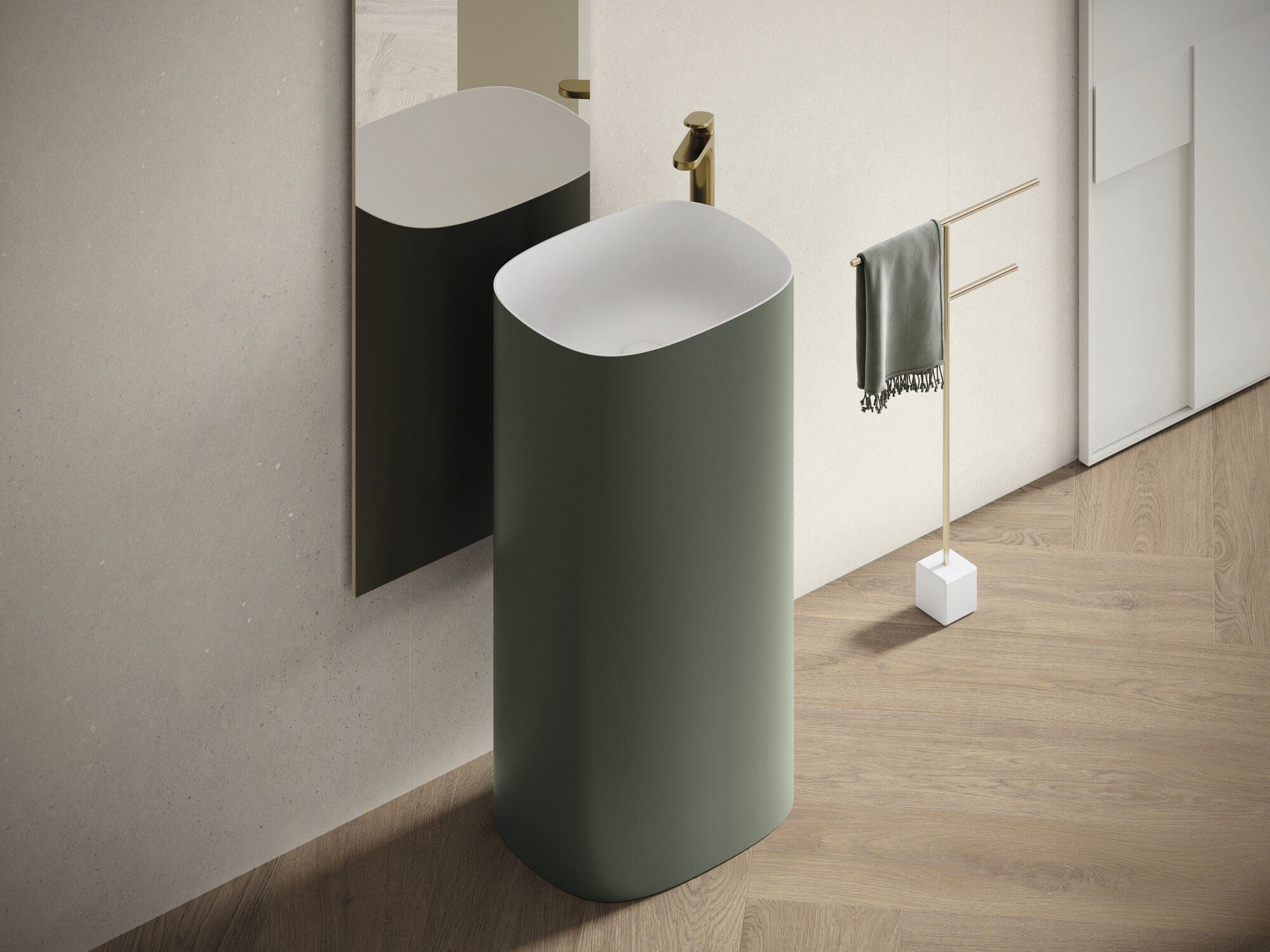 Es imposible que este lavabo de pie pase desapercibido. Con su forma ovalada y superficie lisa, añade un toque de elegancia y belleza a cualquier baño.