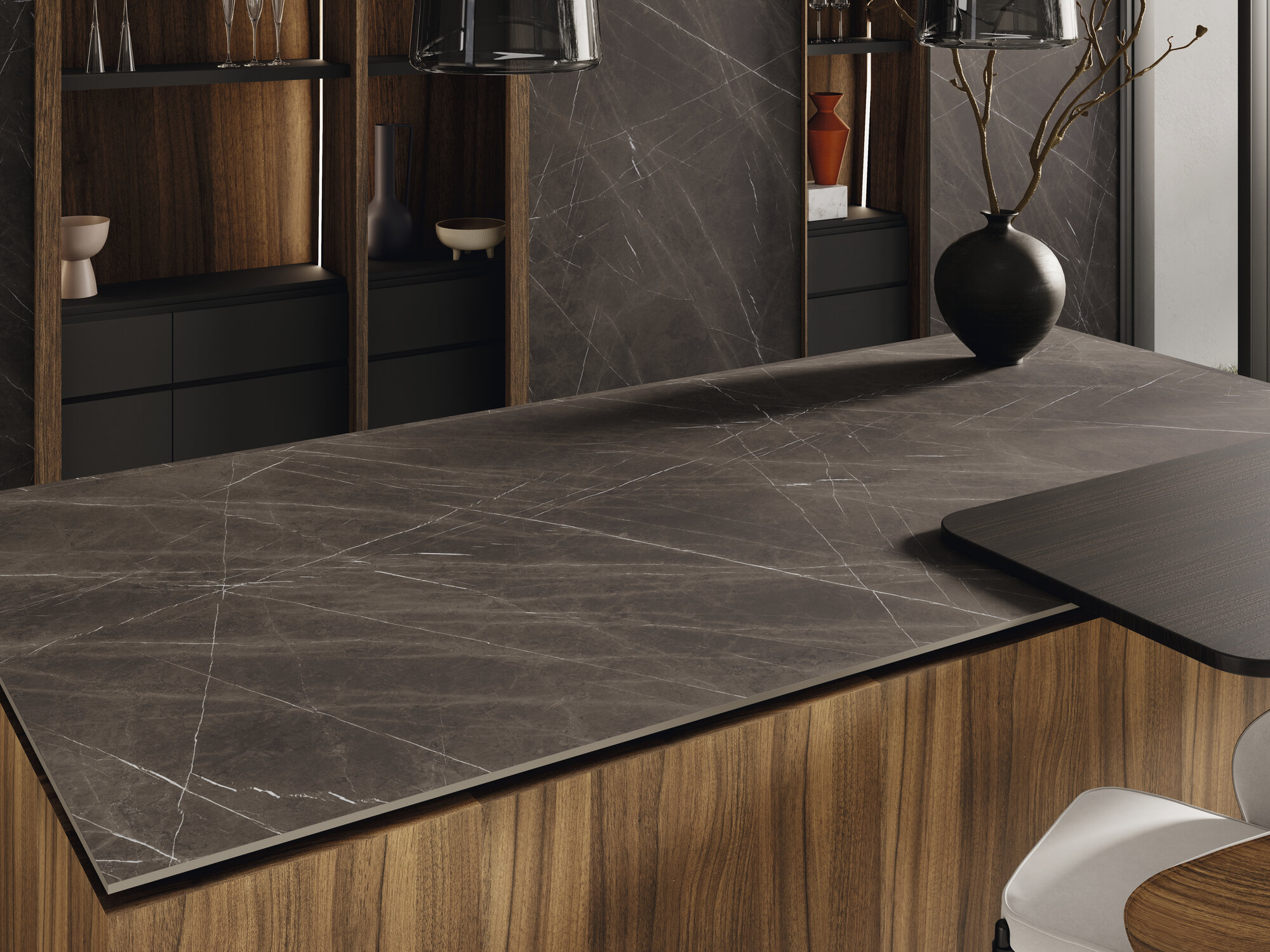 La colección Pulpis, con su inspiración arraigada en la exquisitez de los mármoles de piedra preciosa, se erige como un tributo a la refinada elegancia. Su fondo gris, impregnado con ligeras vetas de un tono más oscuro, está adornado con inclusiones más claras, creando una sinfonía visual de contrastes y matices sutiles. Cada pieza de esta colección encapsula la majestuosidad y la belleza atemporal de la piedra, ofreciendo una experiencia sensorial única que eleva cualquier espacio con su aura de distinción. Pulpis es la elección definitiva para aquellos que buscan fusionar la sensibilidad del lujo con la sobriedad en sus proyectos arquitectónicos y de diseño interior.