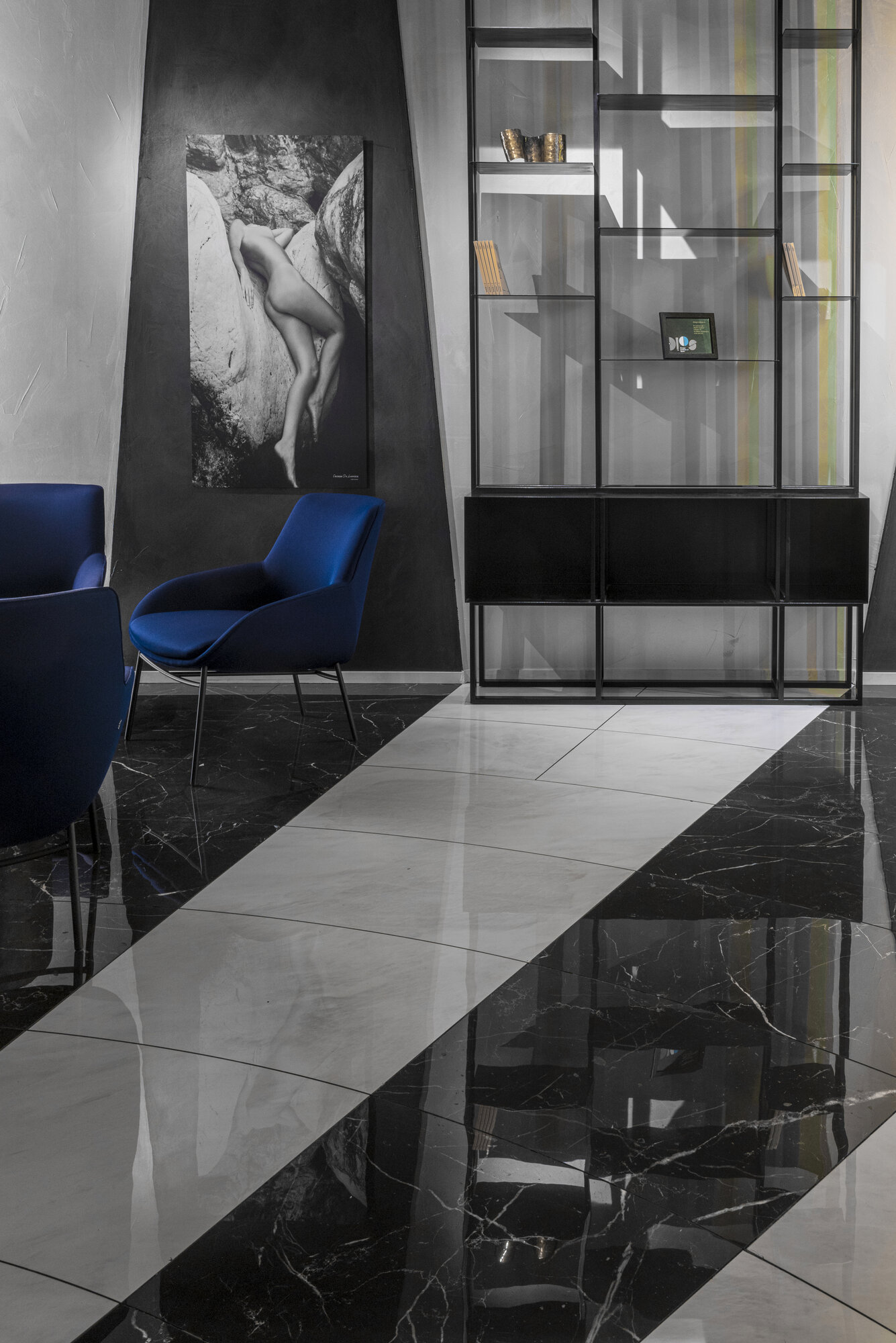 El uso magistral de la cerámica de APE Grupo, las colecciones Alexandria y Night Lux, proporciona un toque de categoría y textura. Cada detalle, desde los delicados azulejos hasta los revestimientos de paredes y suelos, resalta la belleza y versatilidad de este material, elevando el valor estético del espacio.