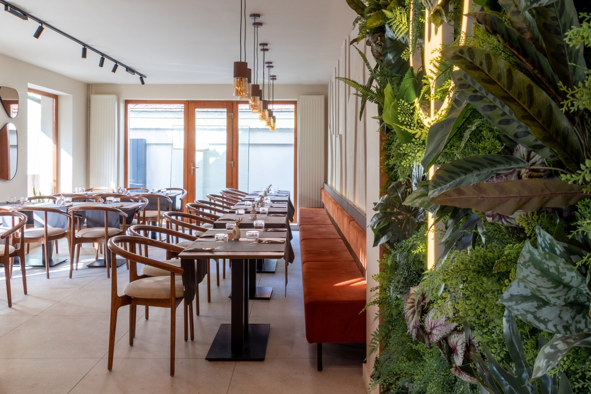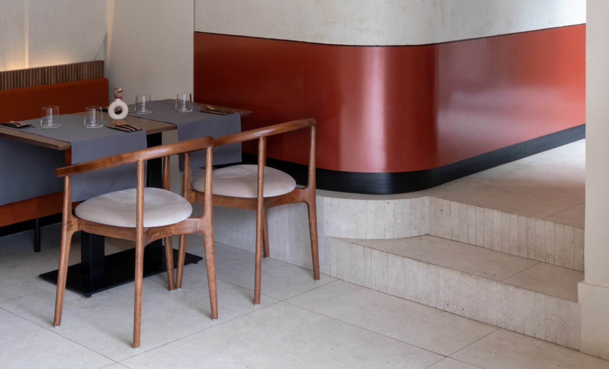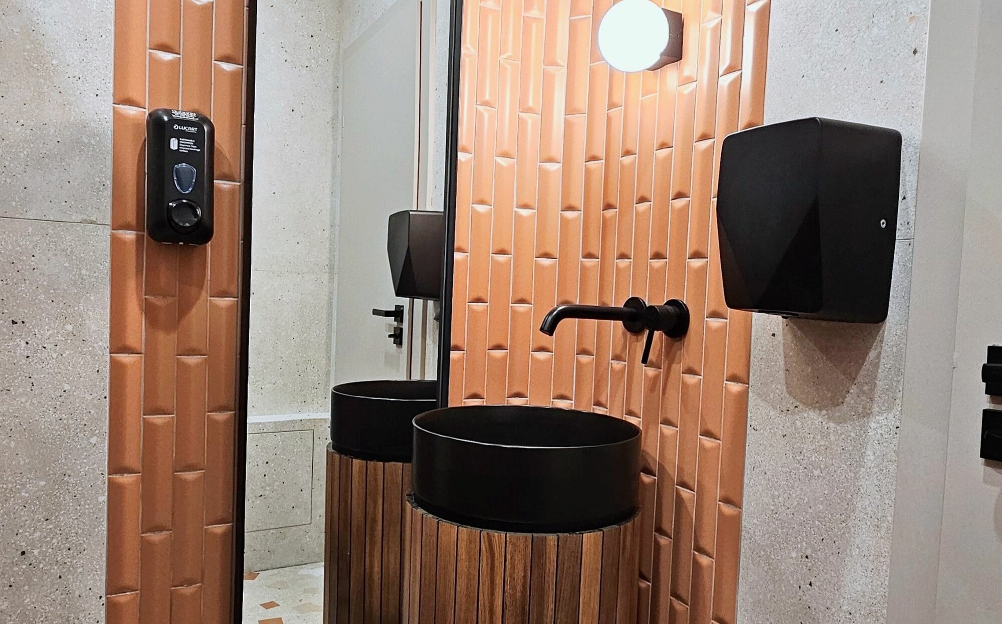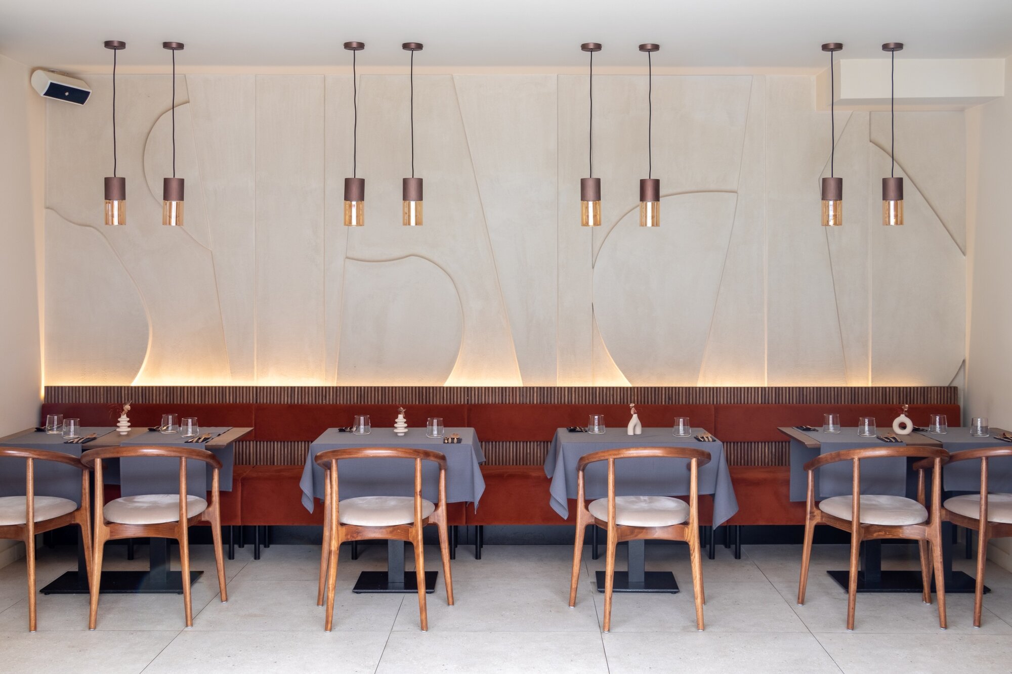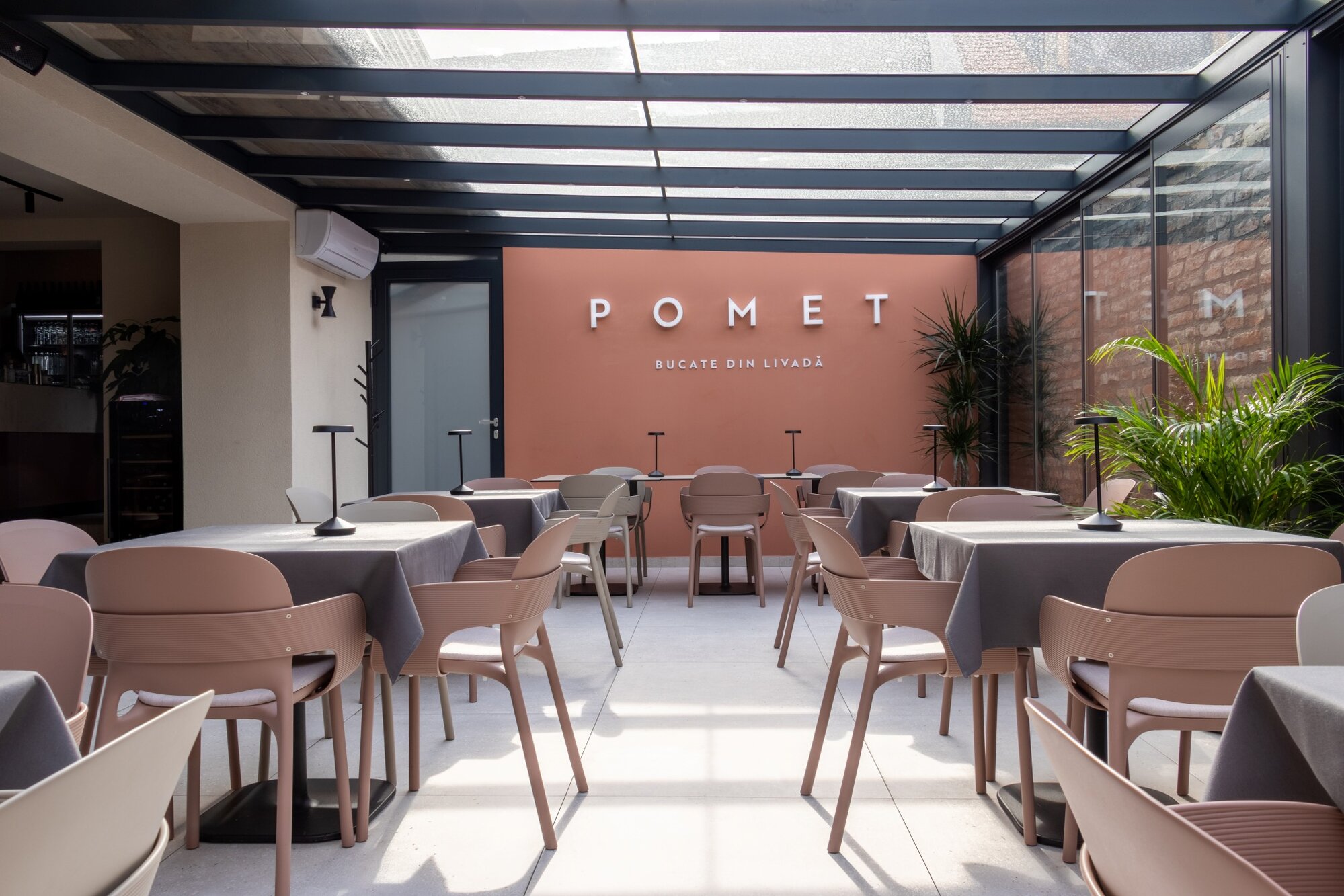 Pomet es un restaurante de Cluj Napoca, Rumanía, que se inspira en el huerto, con relieves 3D abstractos de frutas en las paredes que dan una sensación orgánica, todo ello potenciado mediante la colección AMA y la serie Three-D en su clave Terracota, las cuales entran en sinergia con las luces haciendo referencia a los alambiques de tuica, una bebida local rumana. El pavimento que ofrece AMA fue elegido por su resistencia al paso y su apariencia entre la arena y la vegetación, mientras que las piezas Avorio aportaron el tono y la estética cálida deseada. En los baños destaca el Avorio Ricetta en el suelo y el Terracota de THREE-D en la zona del espejo, creando contraste y apoyando la paleta de colores del proyecto, dotándolo de belleza, calidad y alegría.