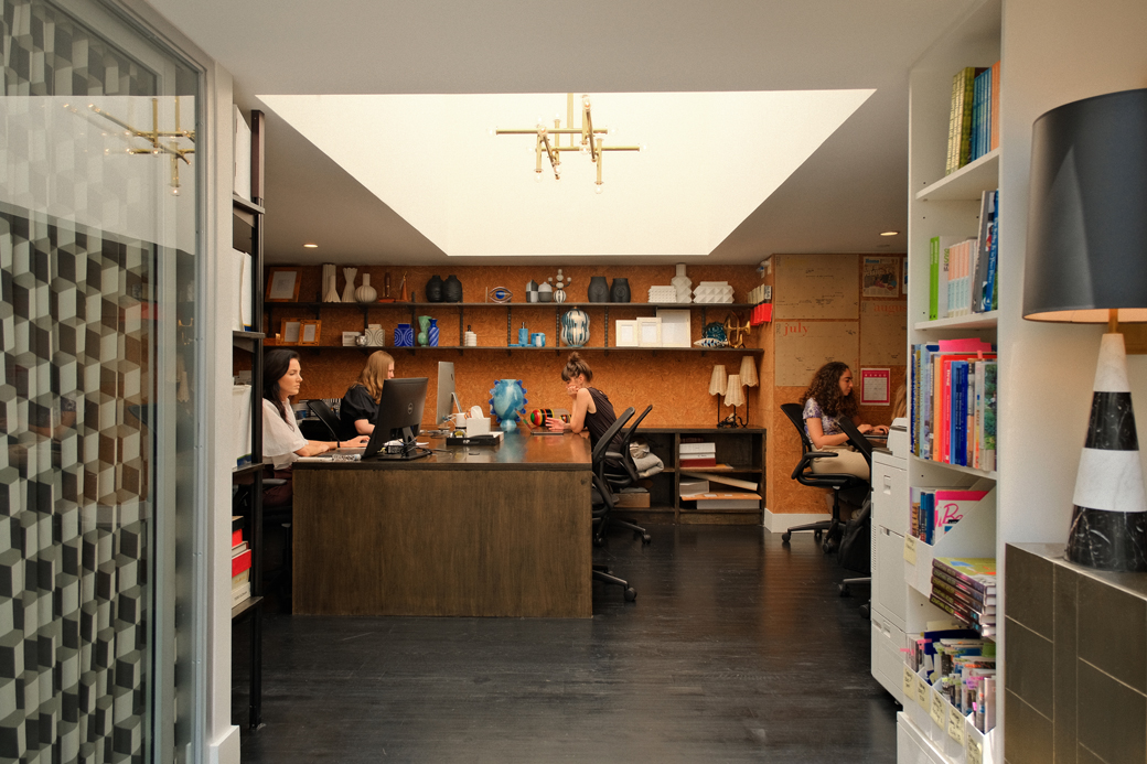 La flagship store de Jonathan Adler en Manhattan ocupa un edificio de tres plantas que reúne tienda, un estudio de cerámica y las oficinas centrales de la empresa. Esta integración favorece la proximidad entre el equipo de diseño y el personal de ventas, impulsando la creatividad y una comunicación más fluida.
